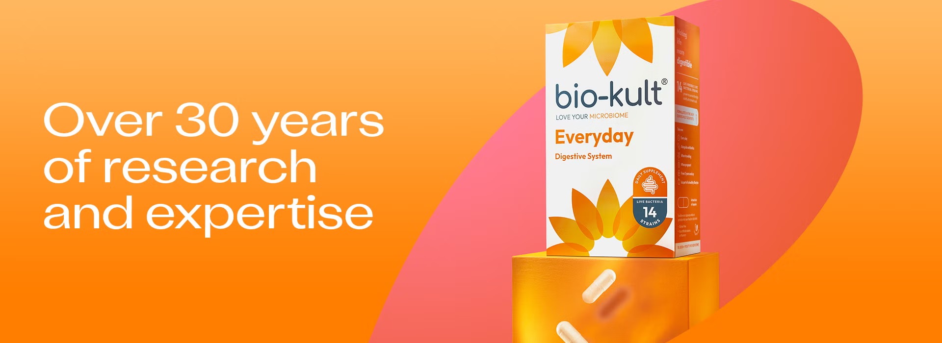 At Bio-Kult,were on a mision to help everybody Feel Gut Great.As the Uk's No. Adultlive bacteria supplement brand", we've spent over 30 yearsexploring the wonders ofthe guimicrobiome. Our team of doctors, nutritional therapists, and microbiologists are passionate about supporting your whole-body heath by nurturing your gut.